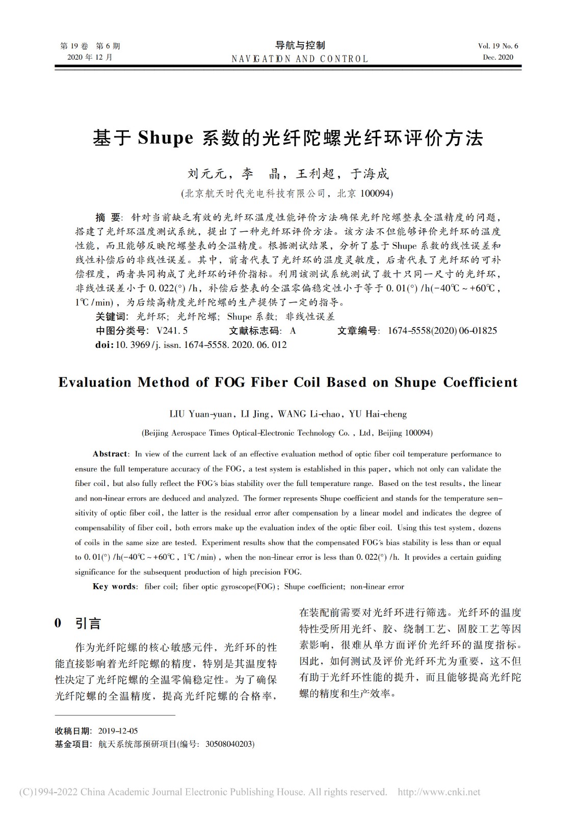 基于Shupe系数的光纤陀螺光纤环评价方法