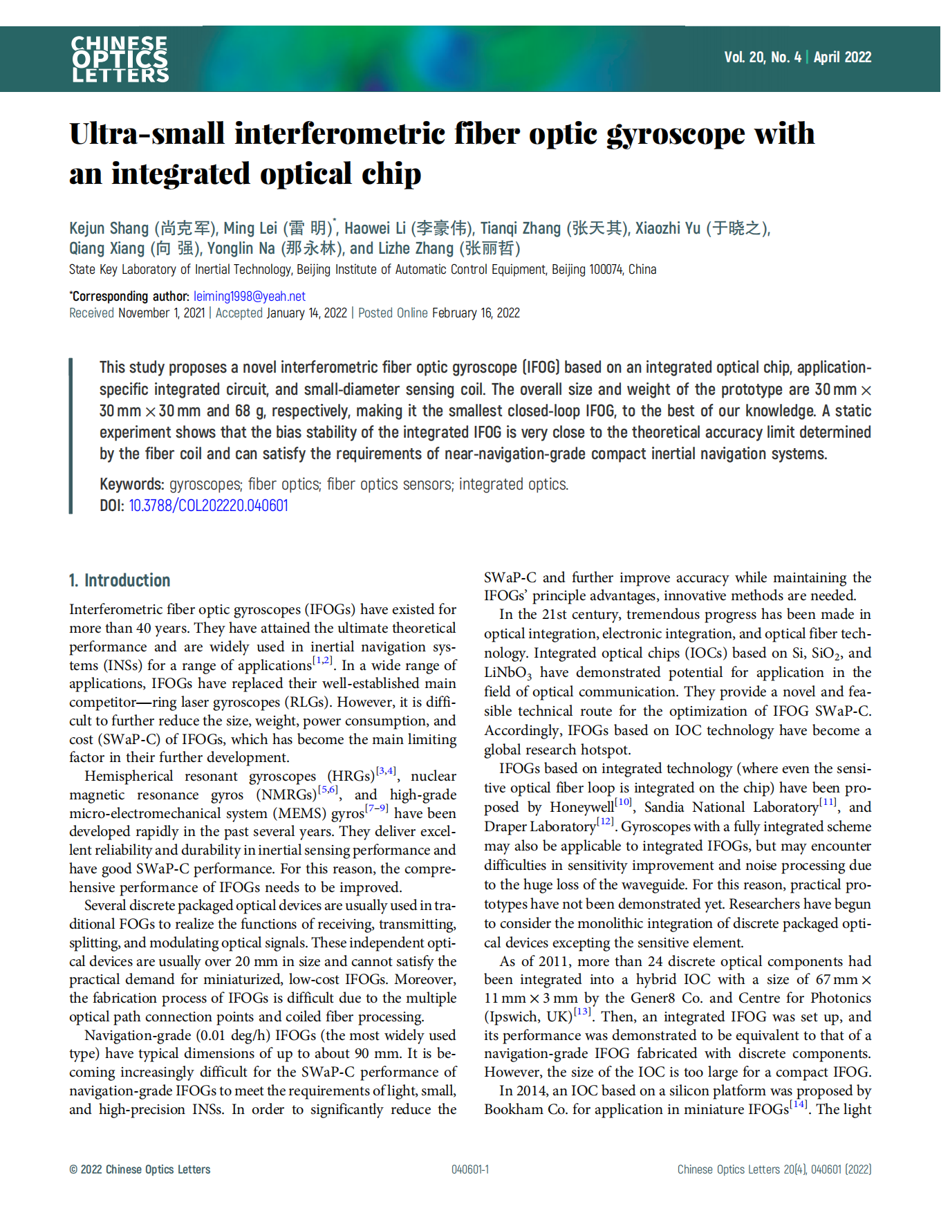 集成化光纤陀螺设计、制造及未来发展_尚克军