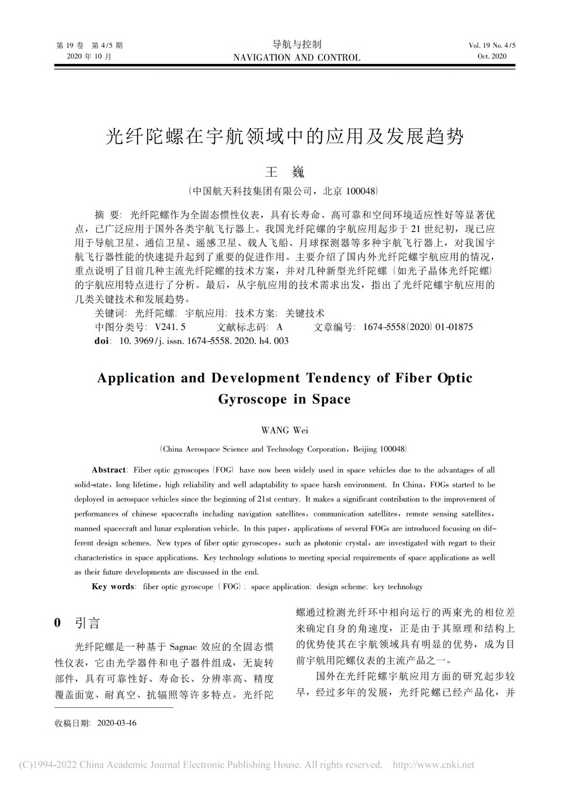 光纤陀螺在宇航领域中的应用及发展趋势(上)