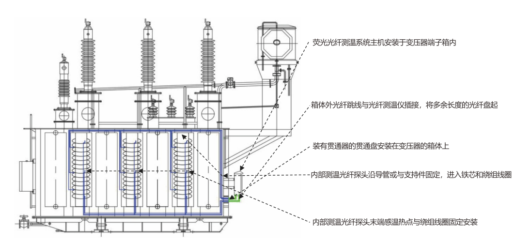 适合于在变压器内部的高电压、强磁场环境下进行温度直接测量,同时又可保证变压器的绝缘性能
