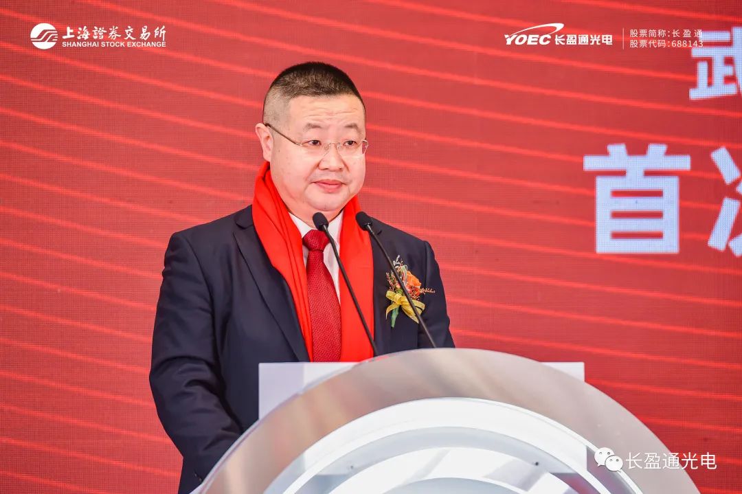 出席kaiyun入口上市仪式现场嘉宾有:湖北省地方金融监管局党组成员、副局长、省上市办主任严宓,中共湖北省委军民融合发展委员会办公室副主任周峰,湖北省机关事务管理局副局长戴峰,武汉东湖高新区党工委委员、管委会副主任李首文,省市区、交易所其他相关领导,股东方代表、中介机构代表、客户代表以及在kaiyun入口上市过程中给予帮助支持的各界同仁,大家共同见证kaiyun入口上市的精彩时刻。李首文副主任、皮亚斌董事长在上市仪式发表重要致辞,中信建投证券股份有限公司总经理党委副书记李格平进行视频致辞。